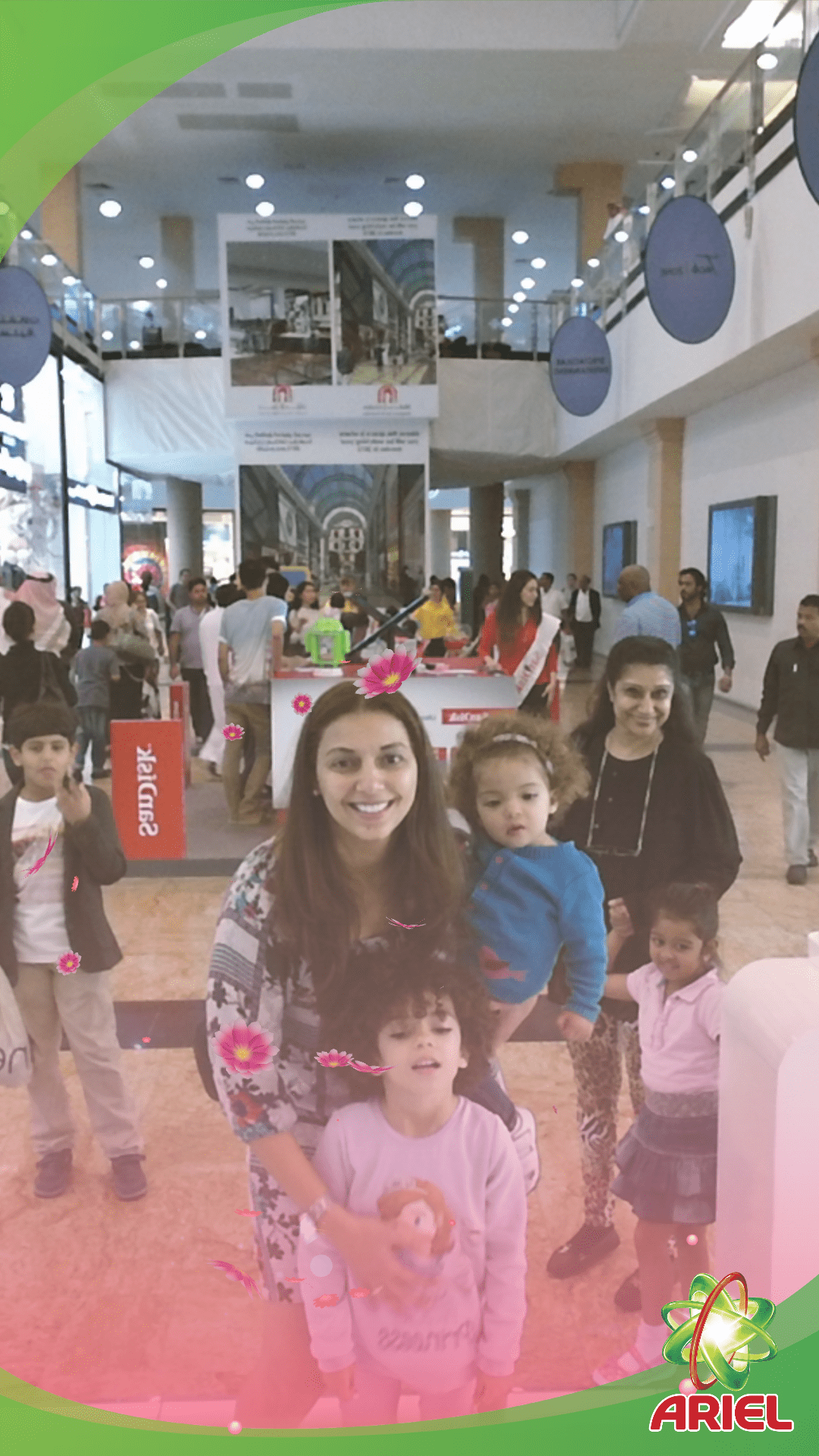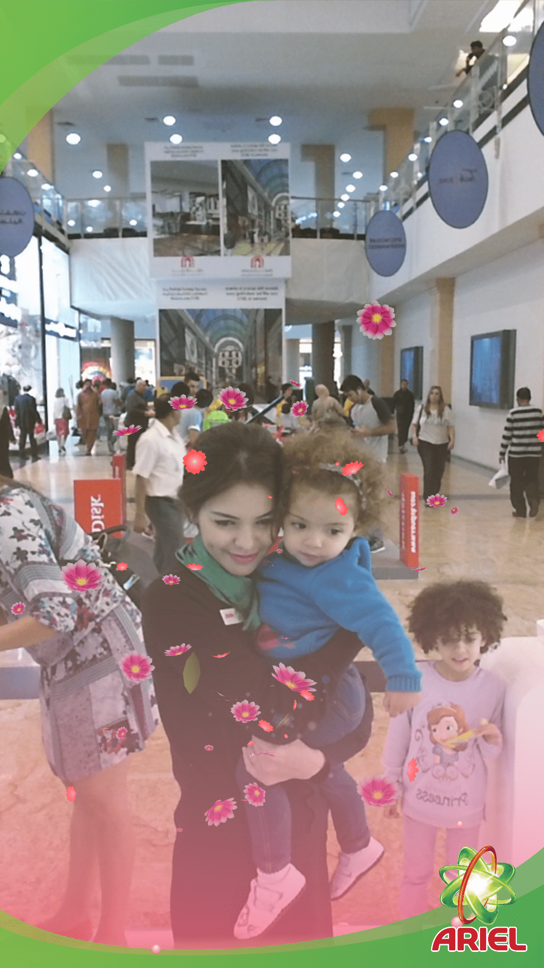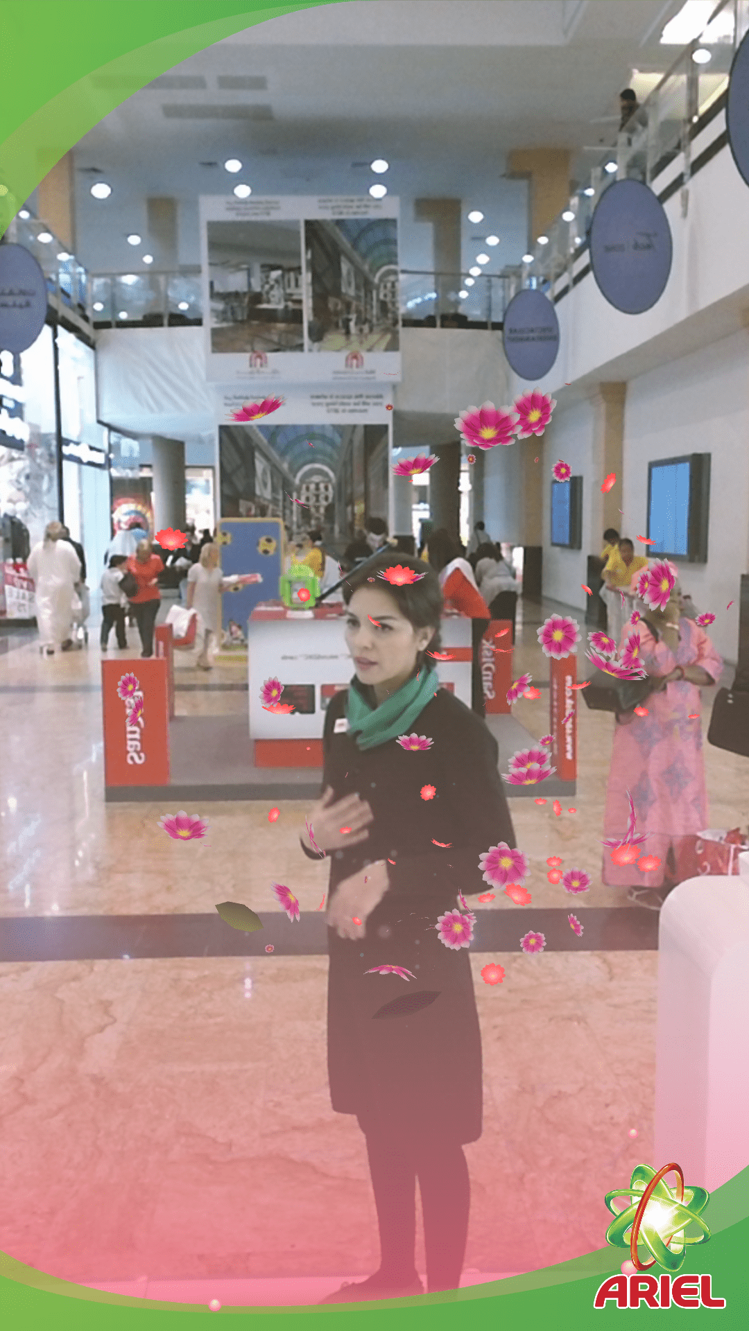 A simple wave triggered a vibrant visual transformation. Virtual flowers bloomed across the user’s clothing, symbolizing the freshness of the new Ariel detergent. This tactile interaction turned a standard mall visit into a memorable brand story.