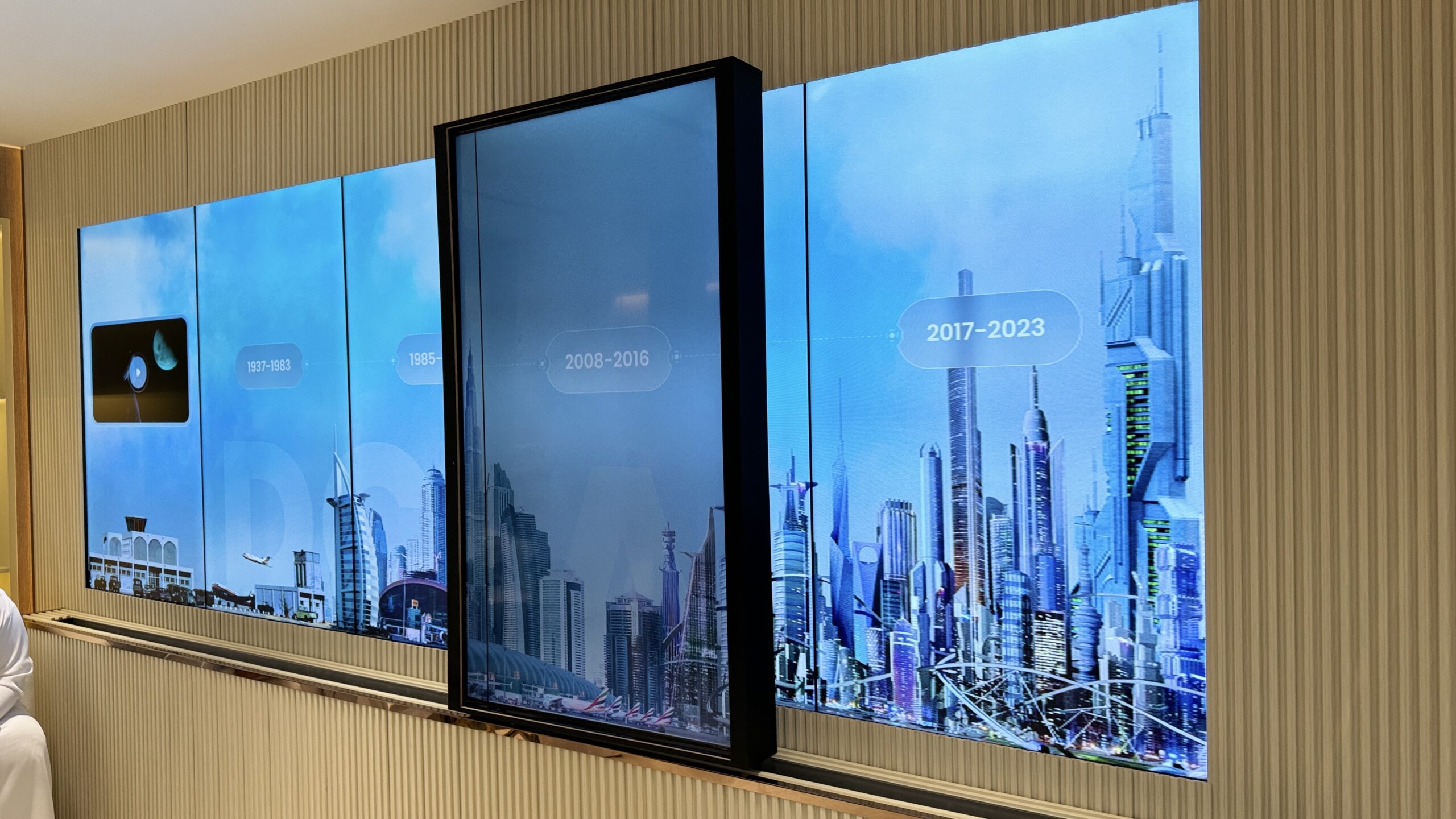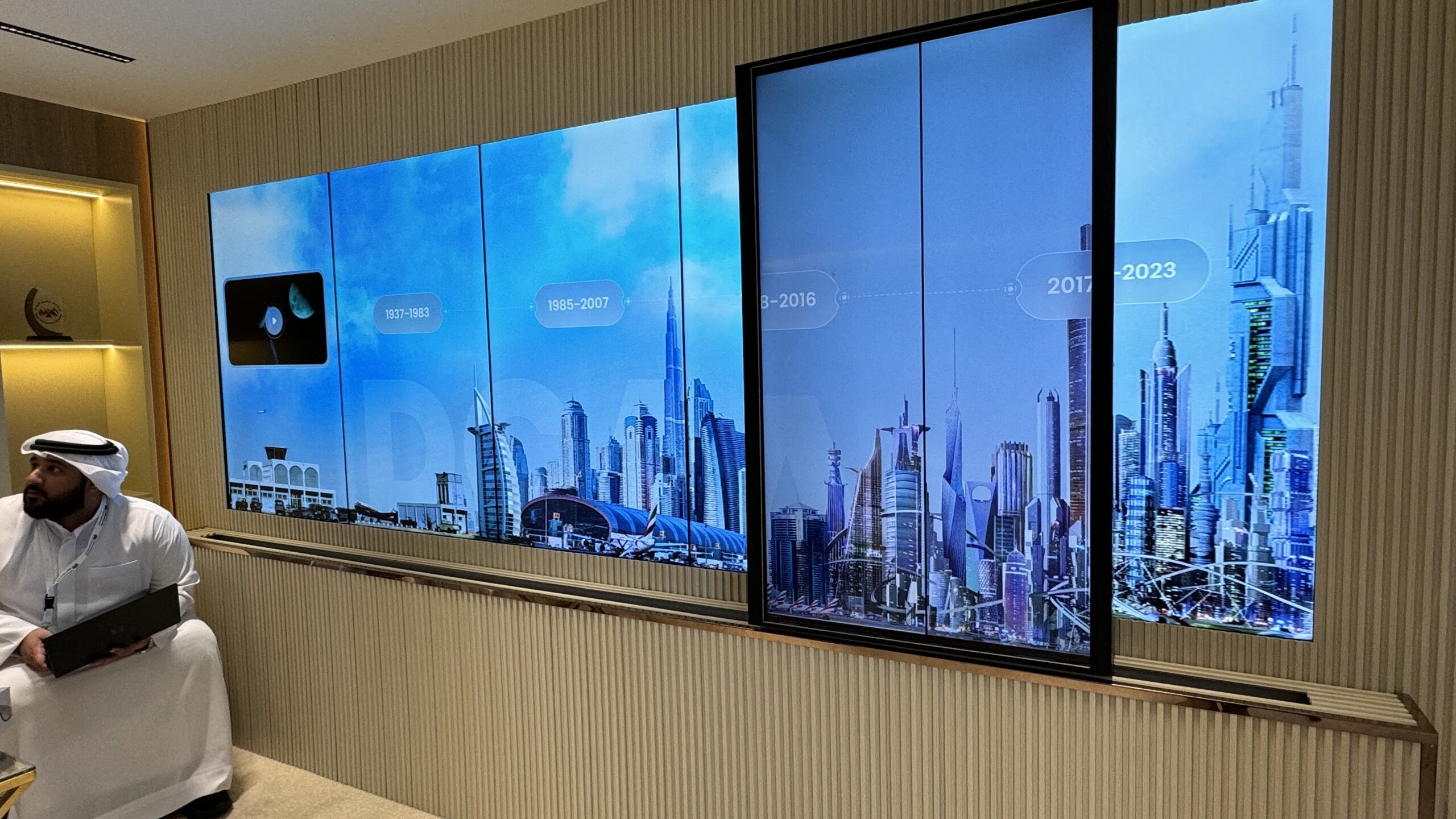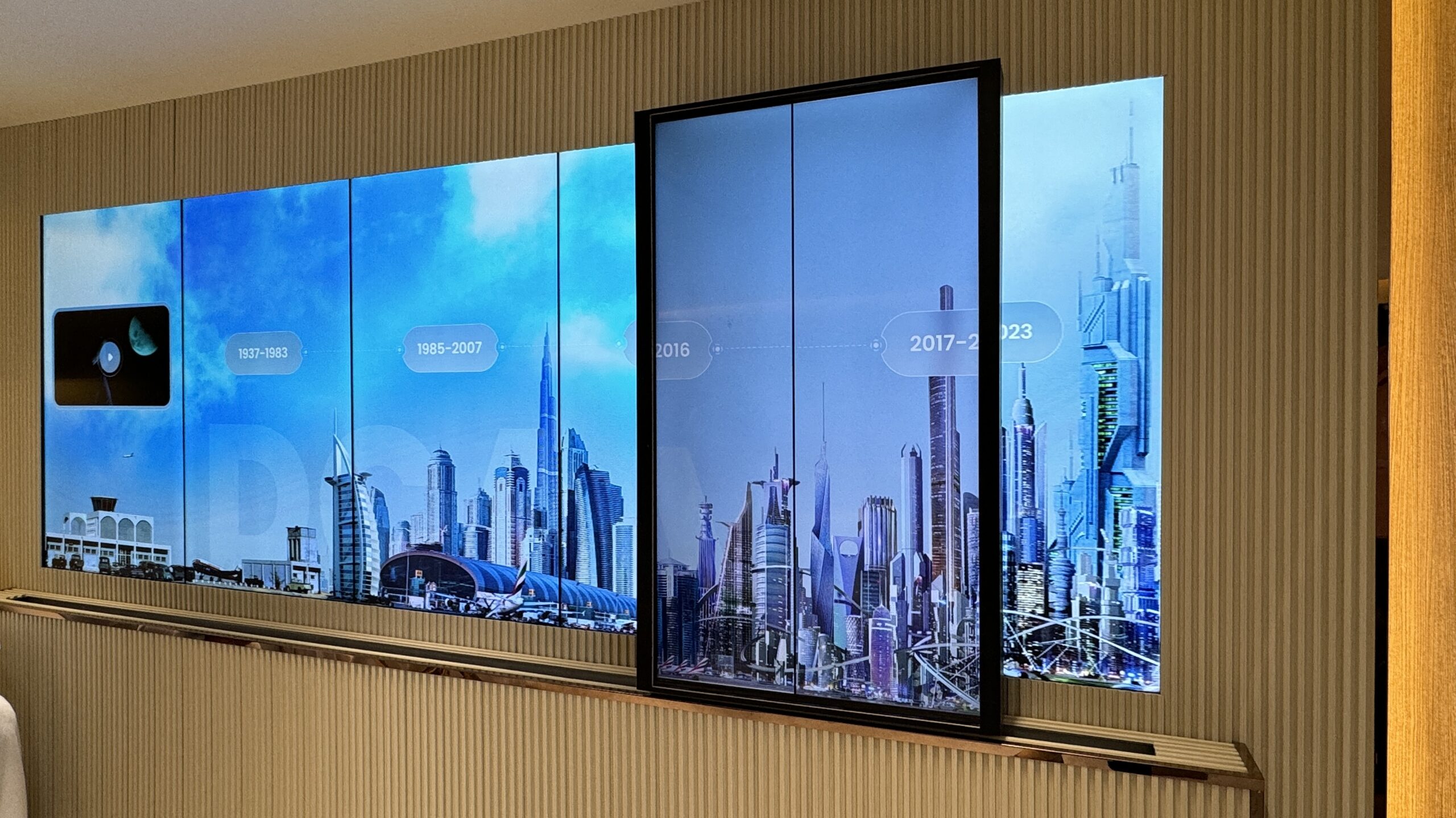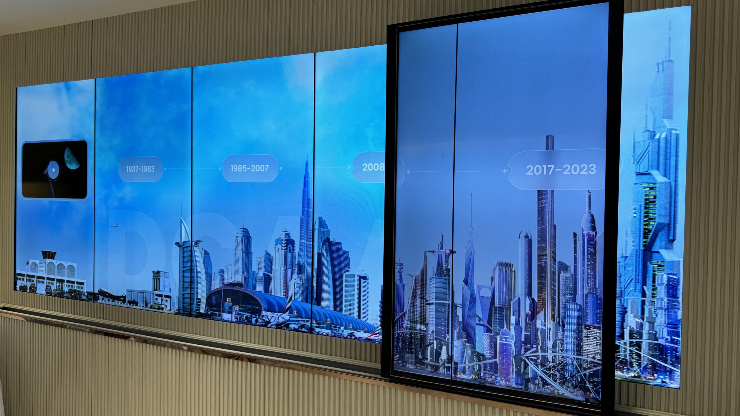 Dubai Civil Aviation Authority (DCAA) required a landmark activation for their 2023 Air Show booth to debut an award-winning production by Ti22 Films. We engineered a custom mechatronics-driven sliding screen that physically moved across a vibrant LED skyline of Dubai. This seamless blend of hardware and software transformed a standard video screening into a tactile, immersive journey through the city’s aviation history.