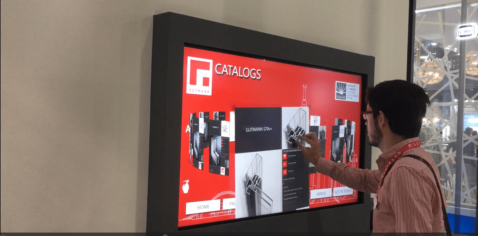 Gutmann Middle East faced a common exhibition hurdle: presenting a massive catalog of aluminum systems without overwhelming their booth visitors. We designed a custom multi-touch application that organized their entire product range into a fluid, tactile digital experience. This solution allowed potential clients to explore complex facade and window systems through high-resolution visuals and intuitive navigation.
