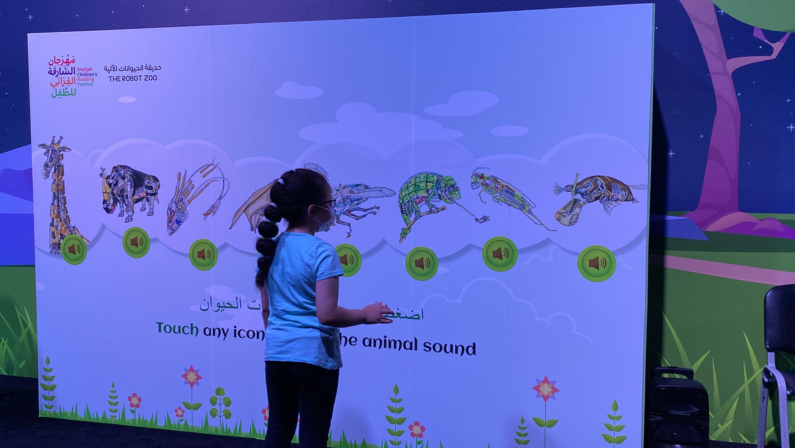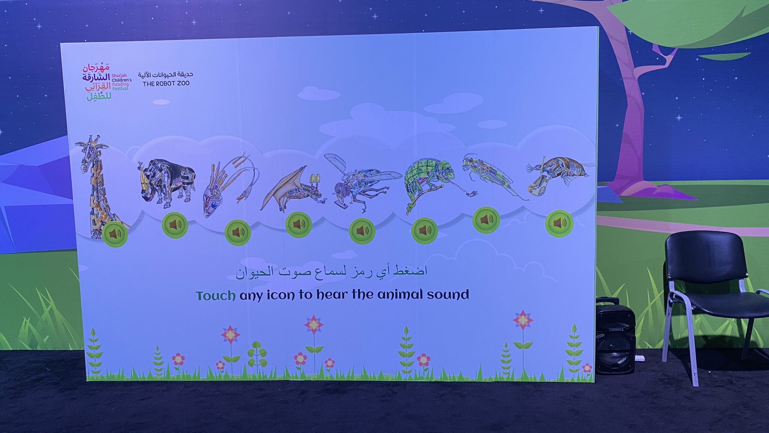 The Sharjah Children’s Reading Festival 2022 required a fresh way to bridge the gap between visual literacy and auditory recognition. We delivered a massive MDF touch wall that transformed static animal clipart into a live, sonic library. By applying conductive paint technology beneath high-quality vinyl surfaces, we turned a simple partition into a sensory learning hub.